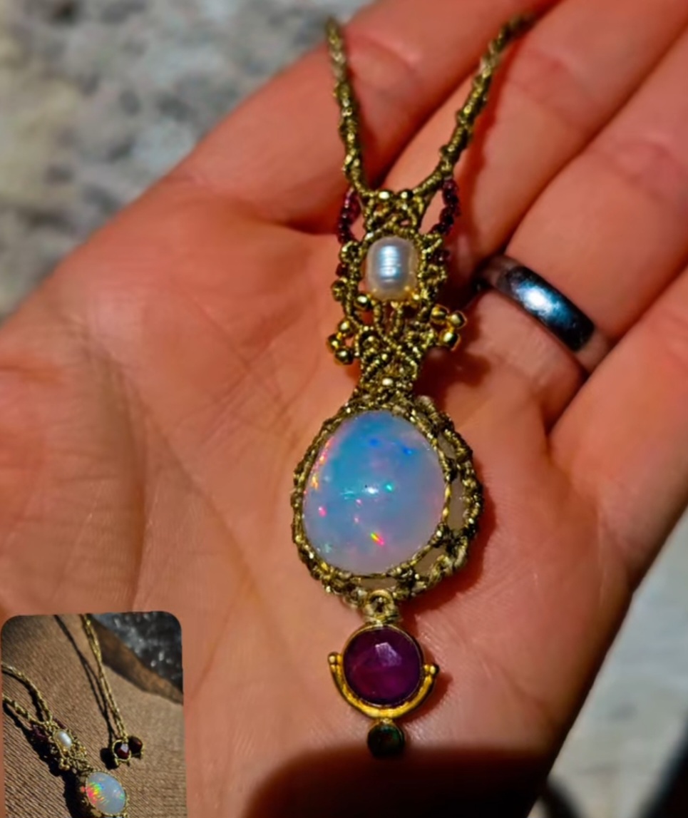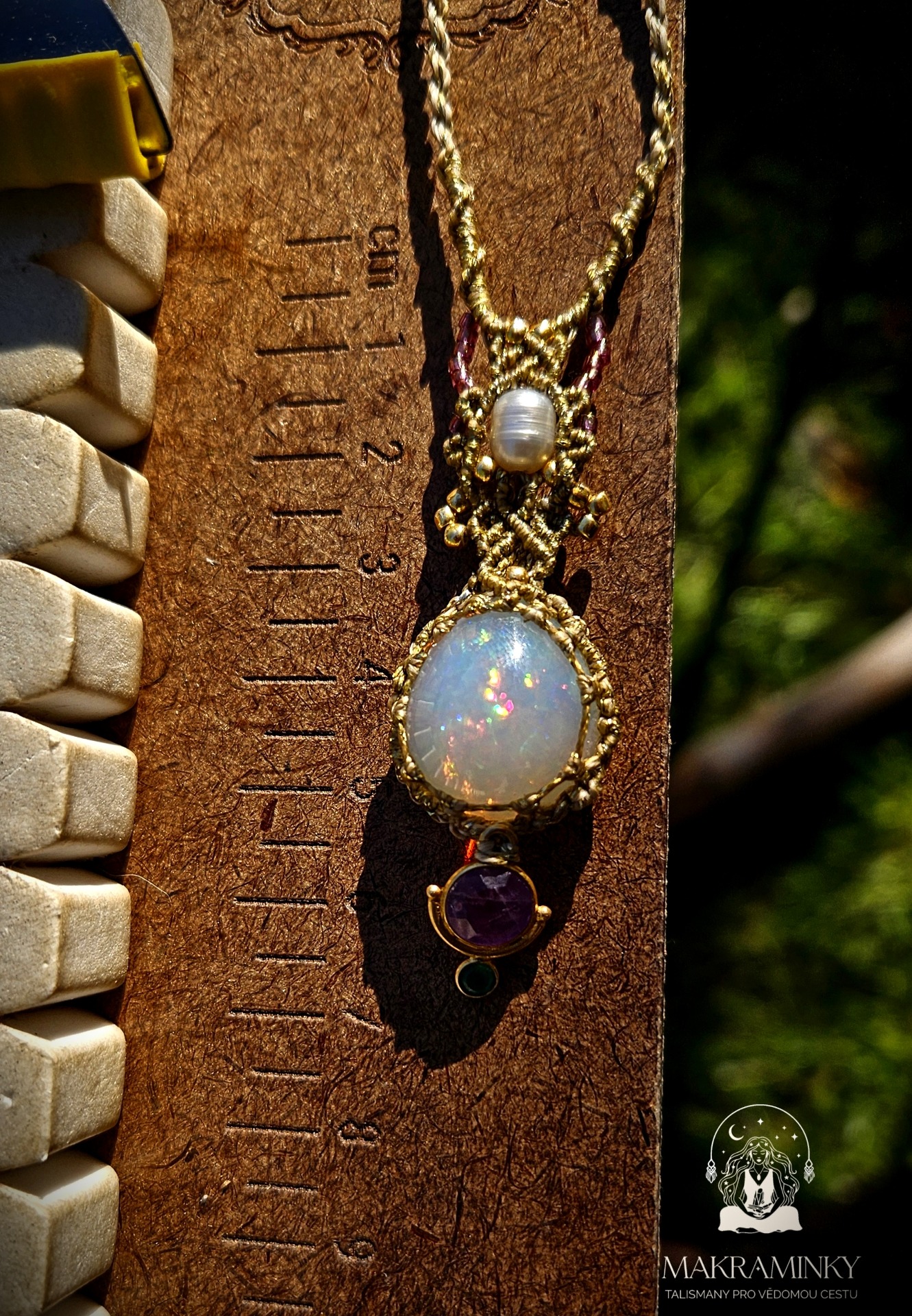 Hojnost - Drahý etiopský Opál, Ametyst, Zelený onyx, Perla