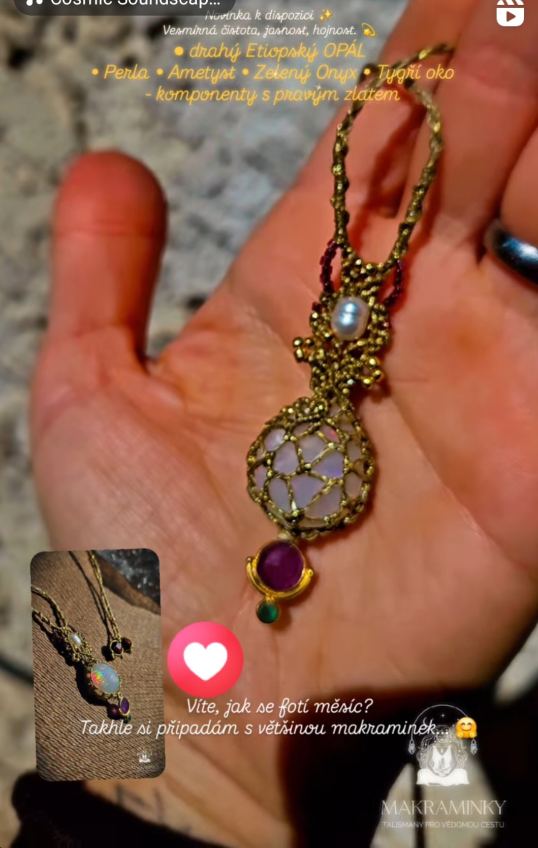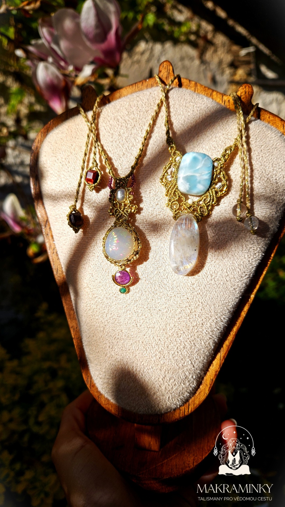 (zlatá Makraminka s měsíčním kamenem a larimarem taktéž k dispozici.)