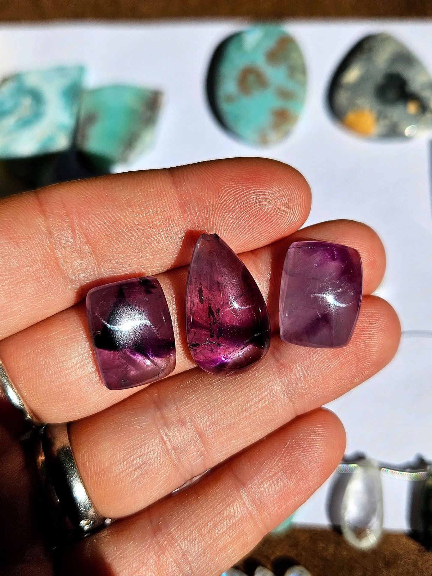 Cena za celou sadu. Velikost cca 2-3cm. V případě zájmu o koupi jednotlivě mi napište, mohu rozdělit následovně: Obdélník vlevo s tmavší kresbou 200,-Kapka s nalomenou špičkou 220,-Obdélník světlejší vpravo 180,-